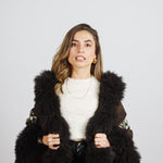 Handwoven Alpaca Ruana in Black - Pattern in White