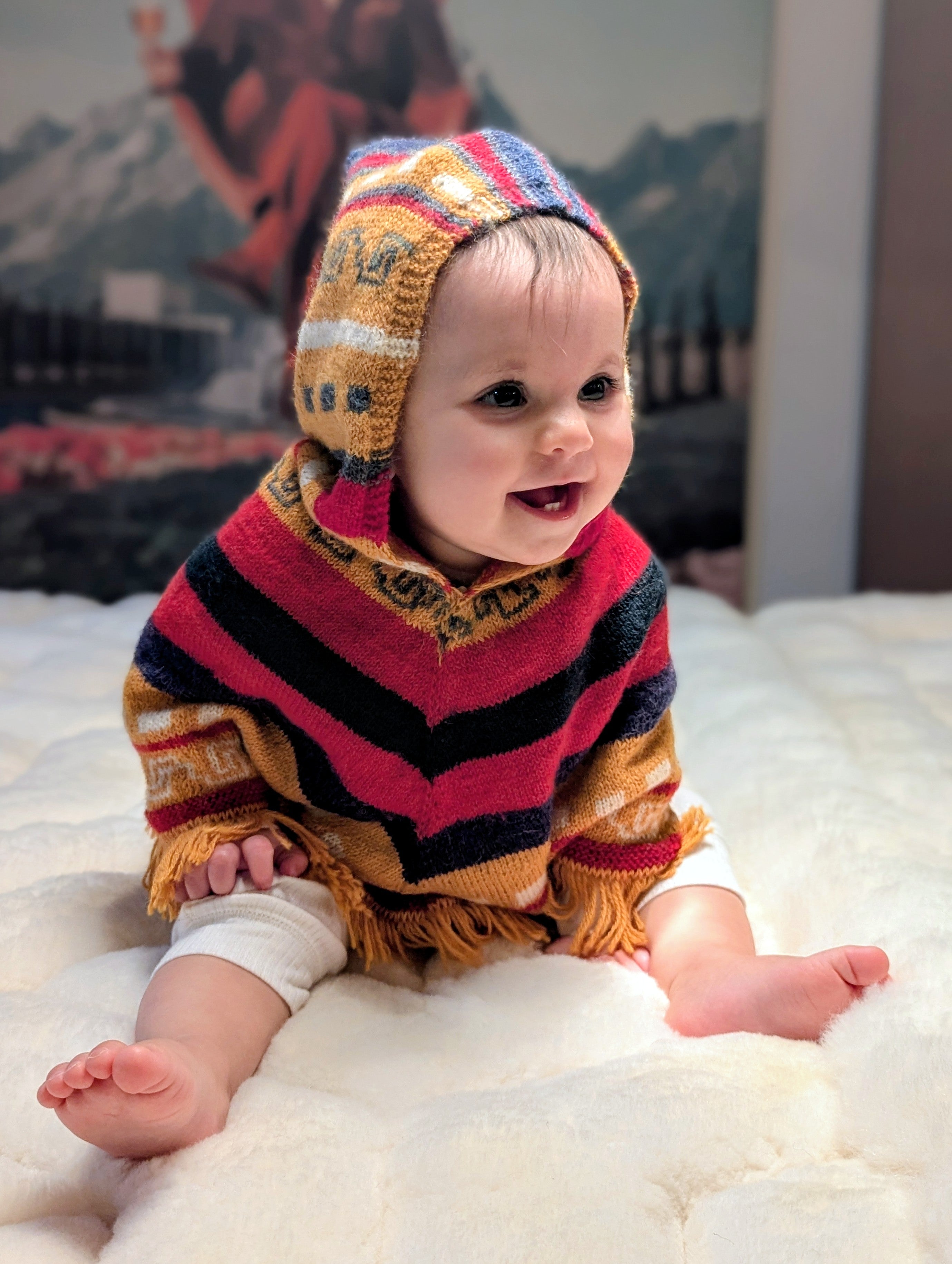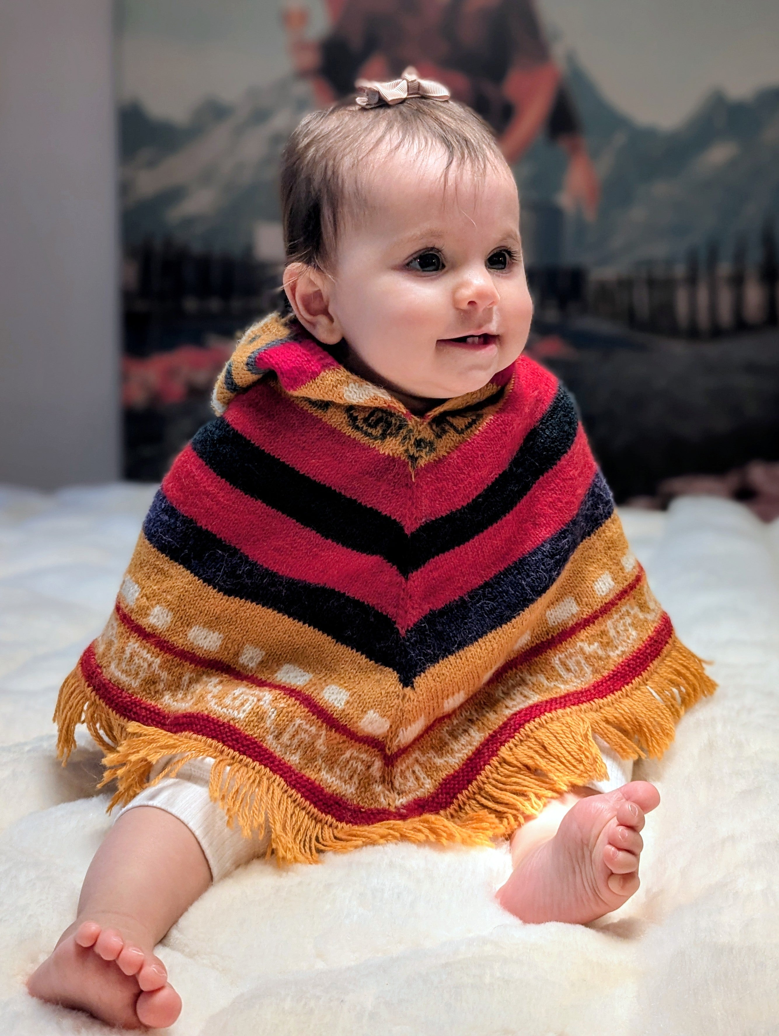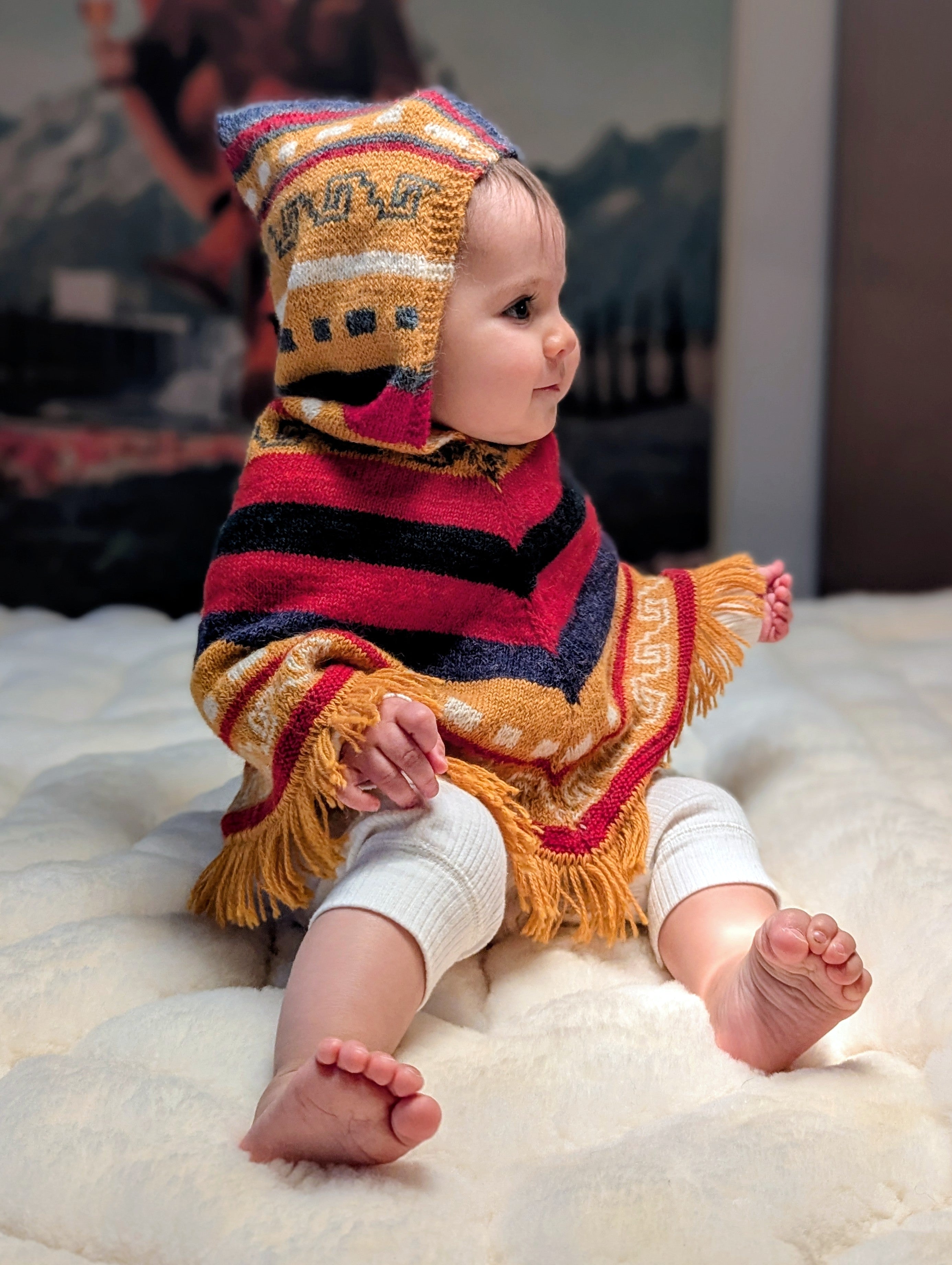 Hand-Knit Alpaca Baby Poncho Sunset Tones