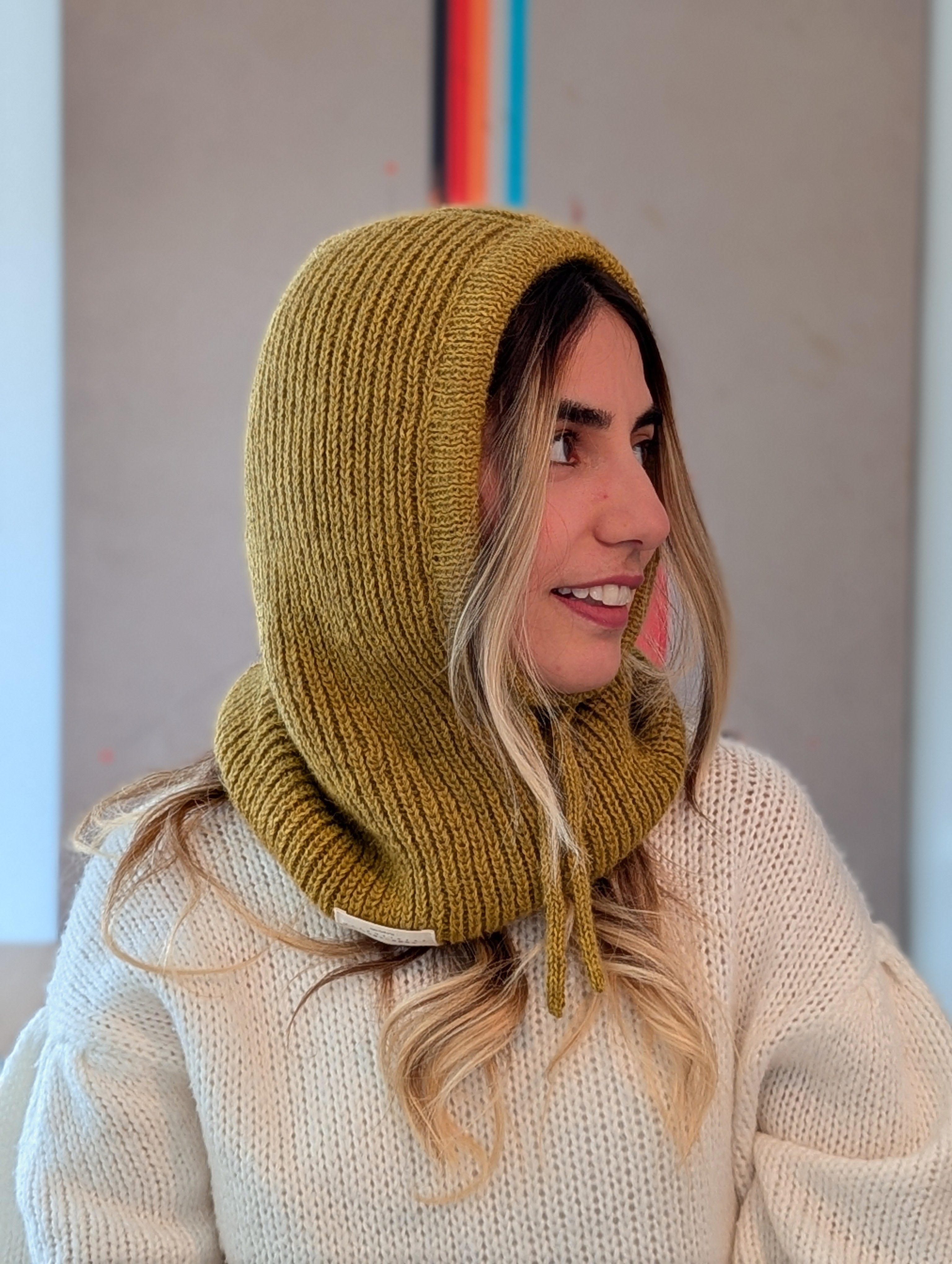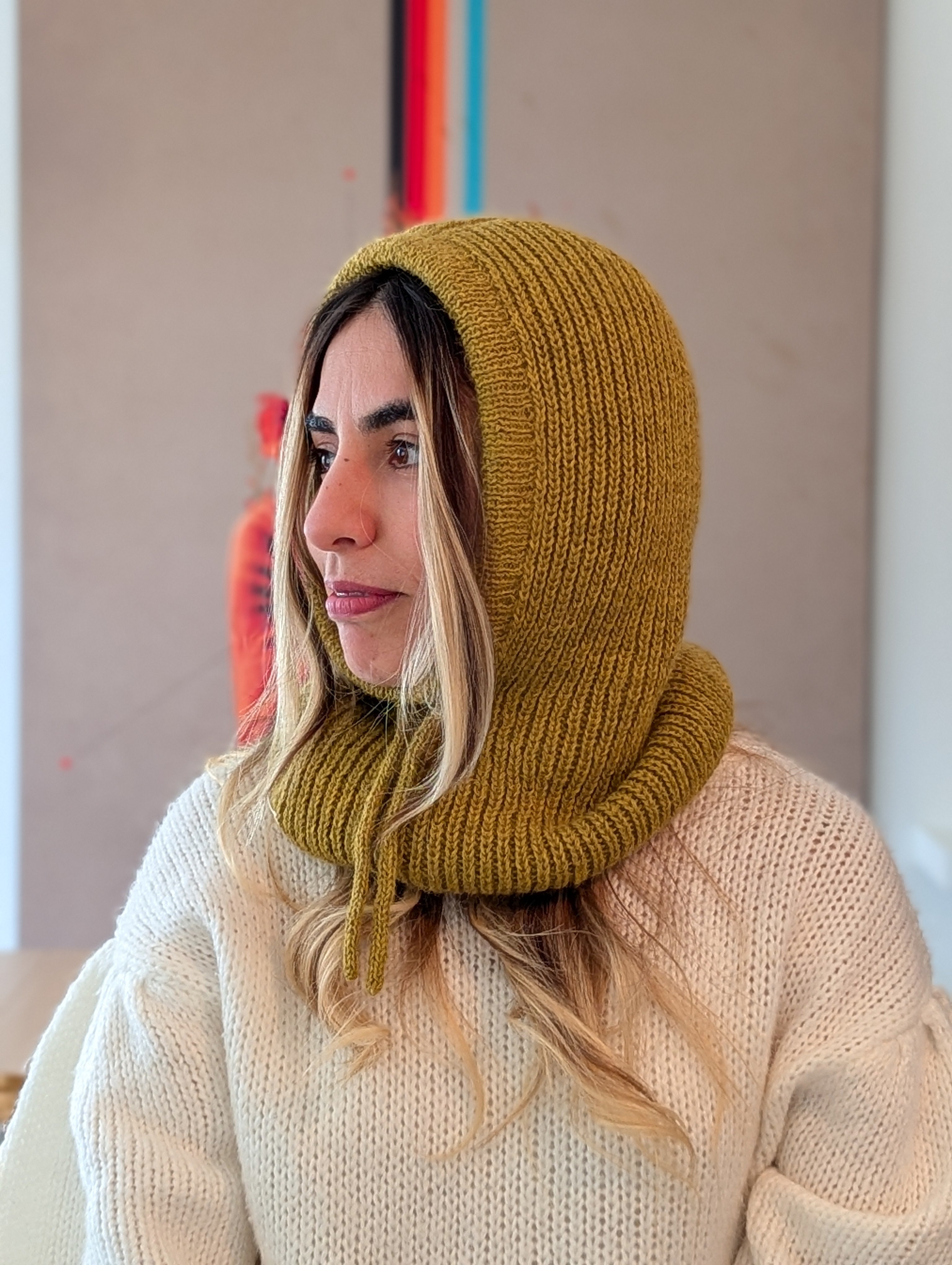 Hand-Knit Alpaca Balaclava Hood in Mustard