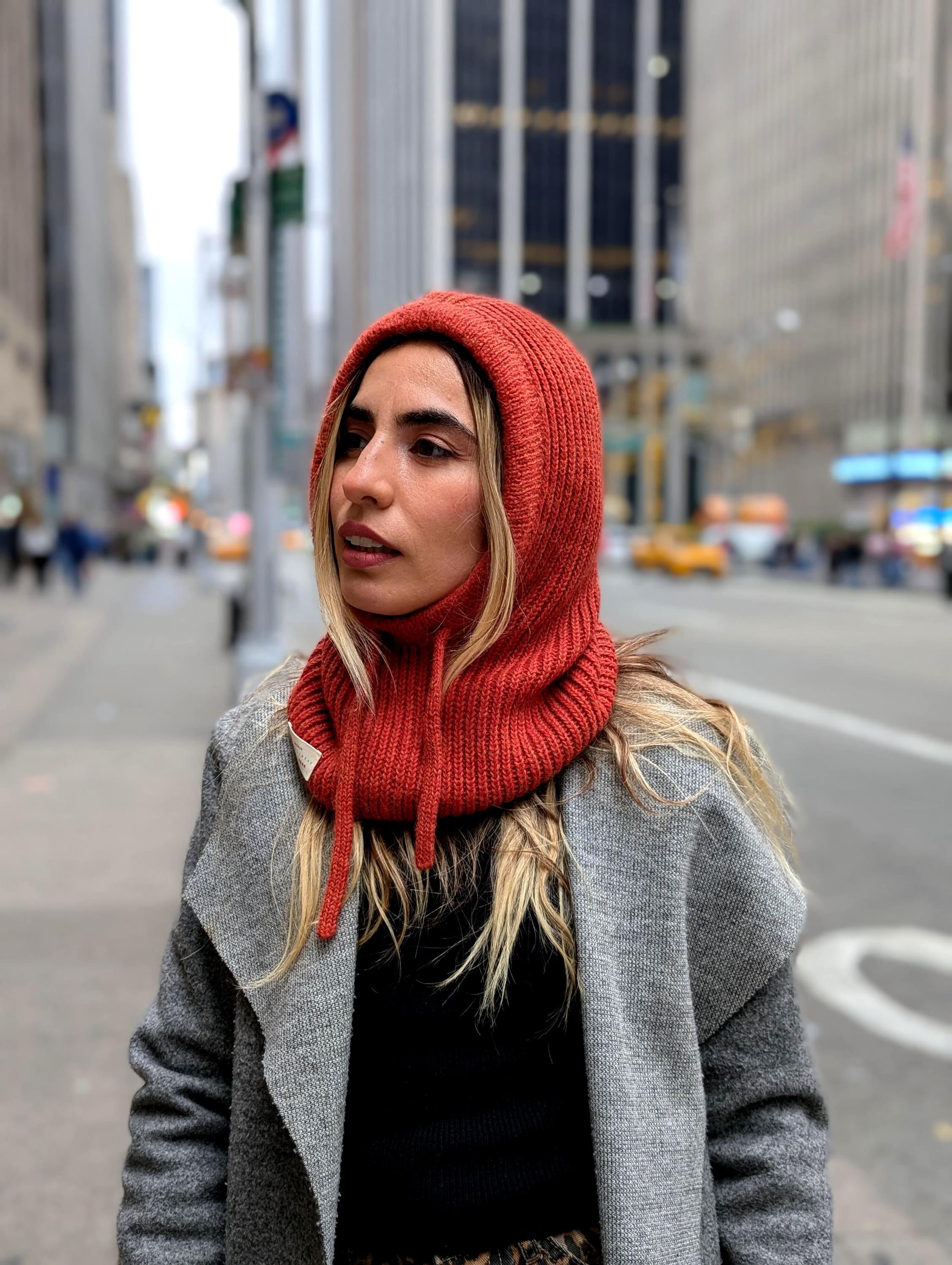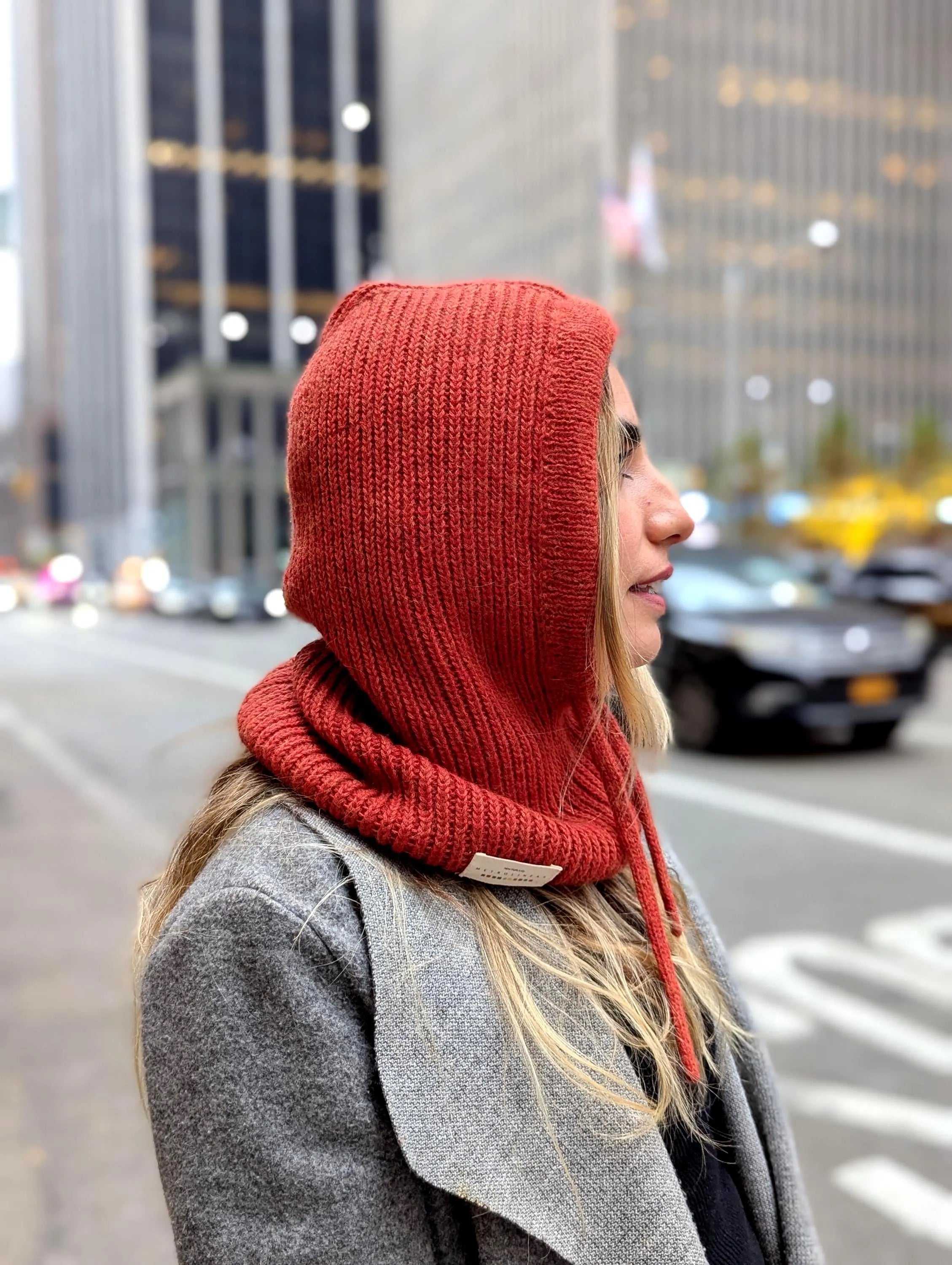 Hand-Knit Alpaca Open Face Balaclava in Orange